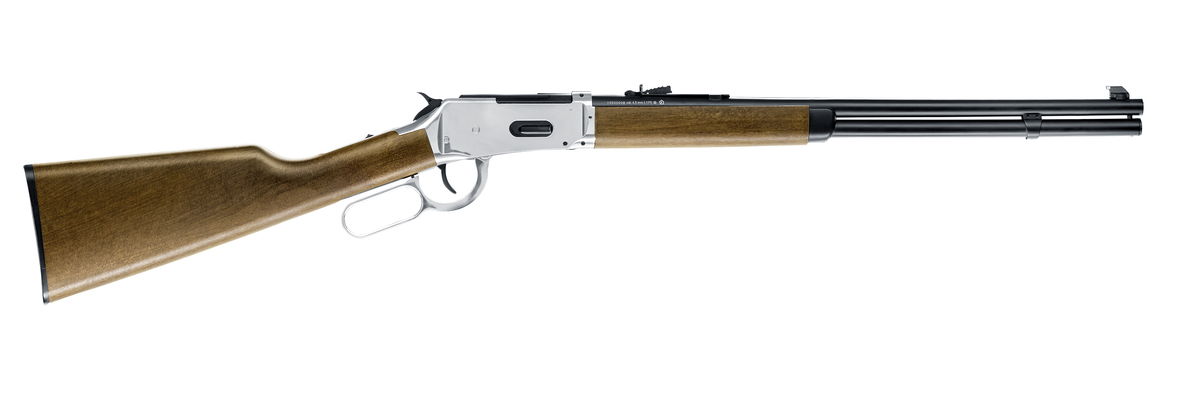 4.5mm steel bb, Length:37 inches, 10 shot capacity, shell ejection system, CO2 Powerplant lever action.
