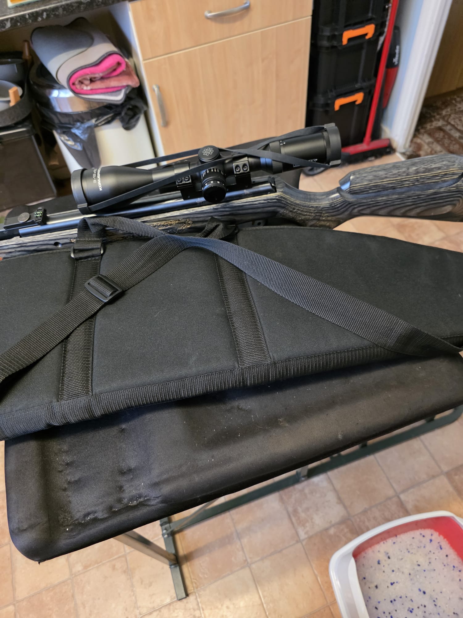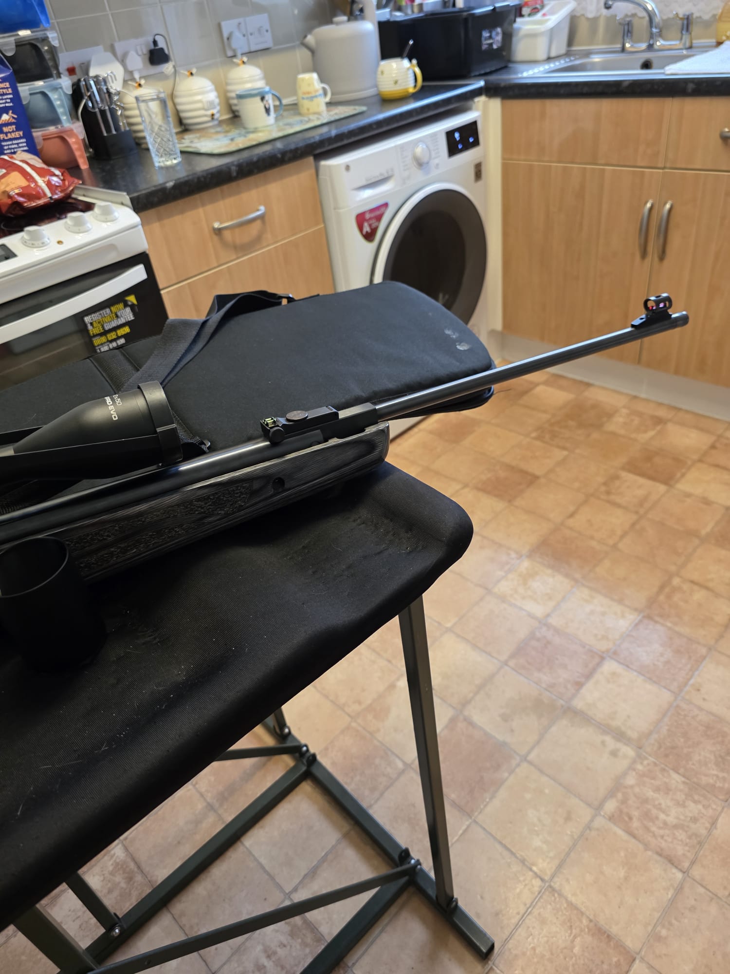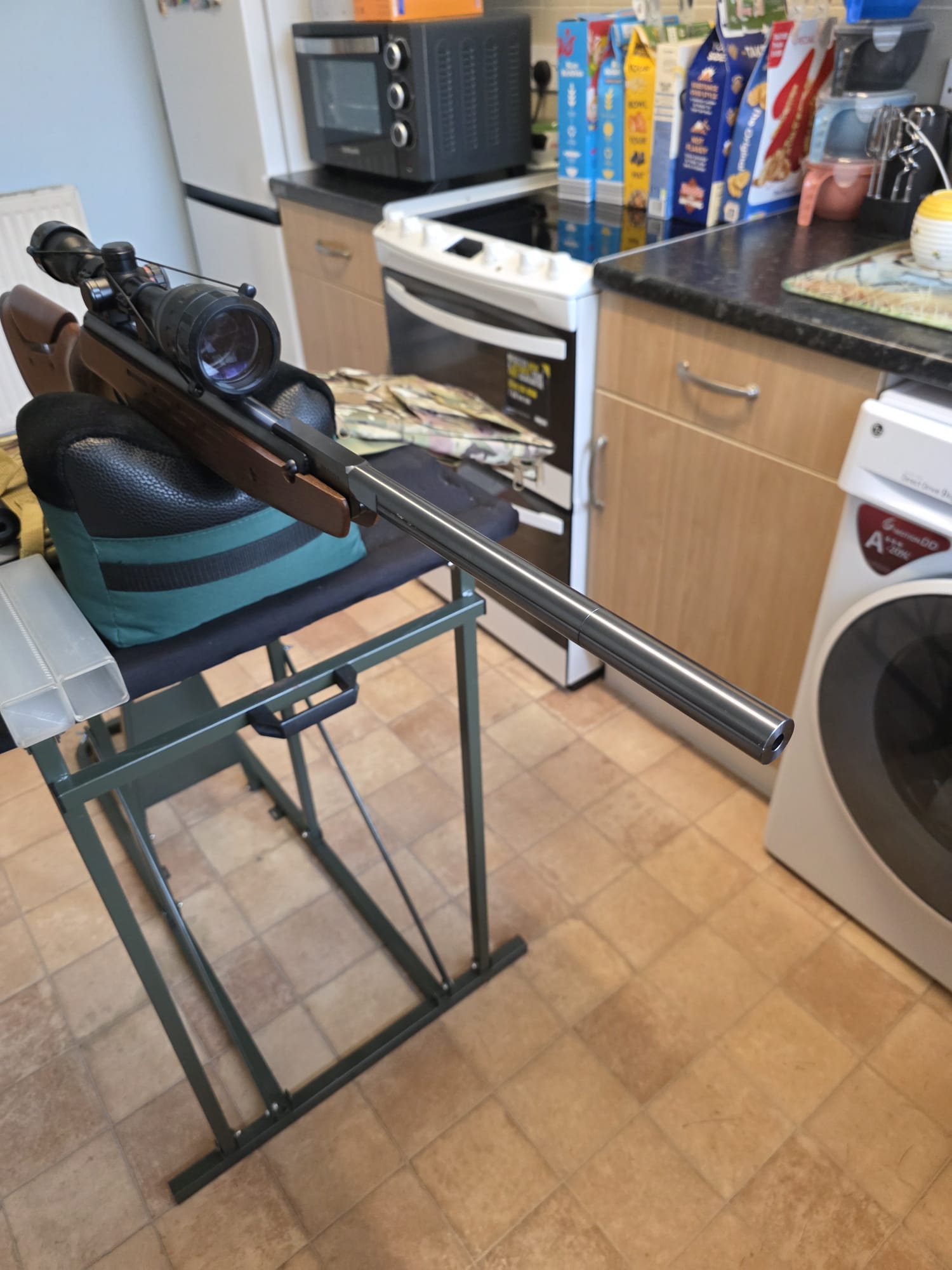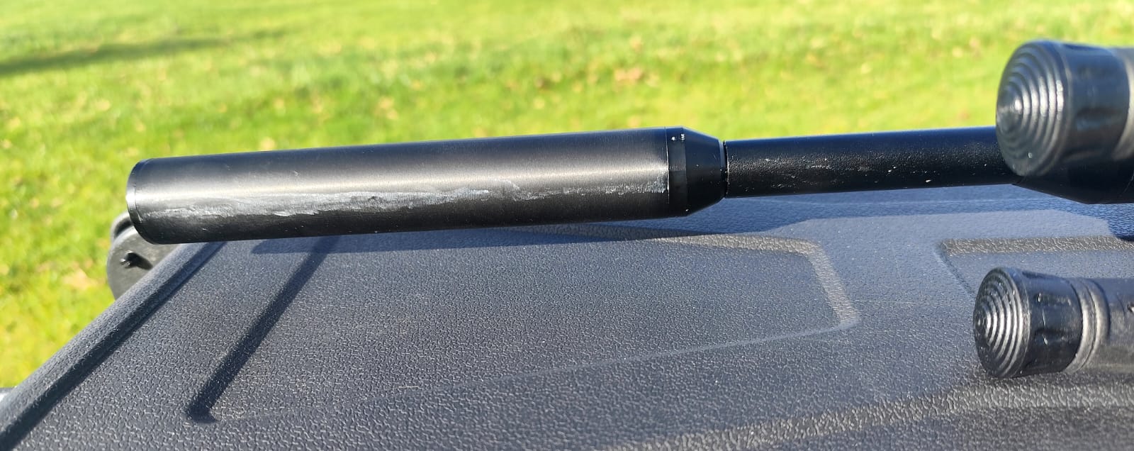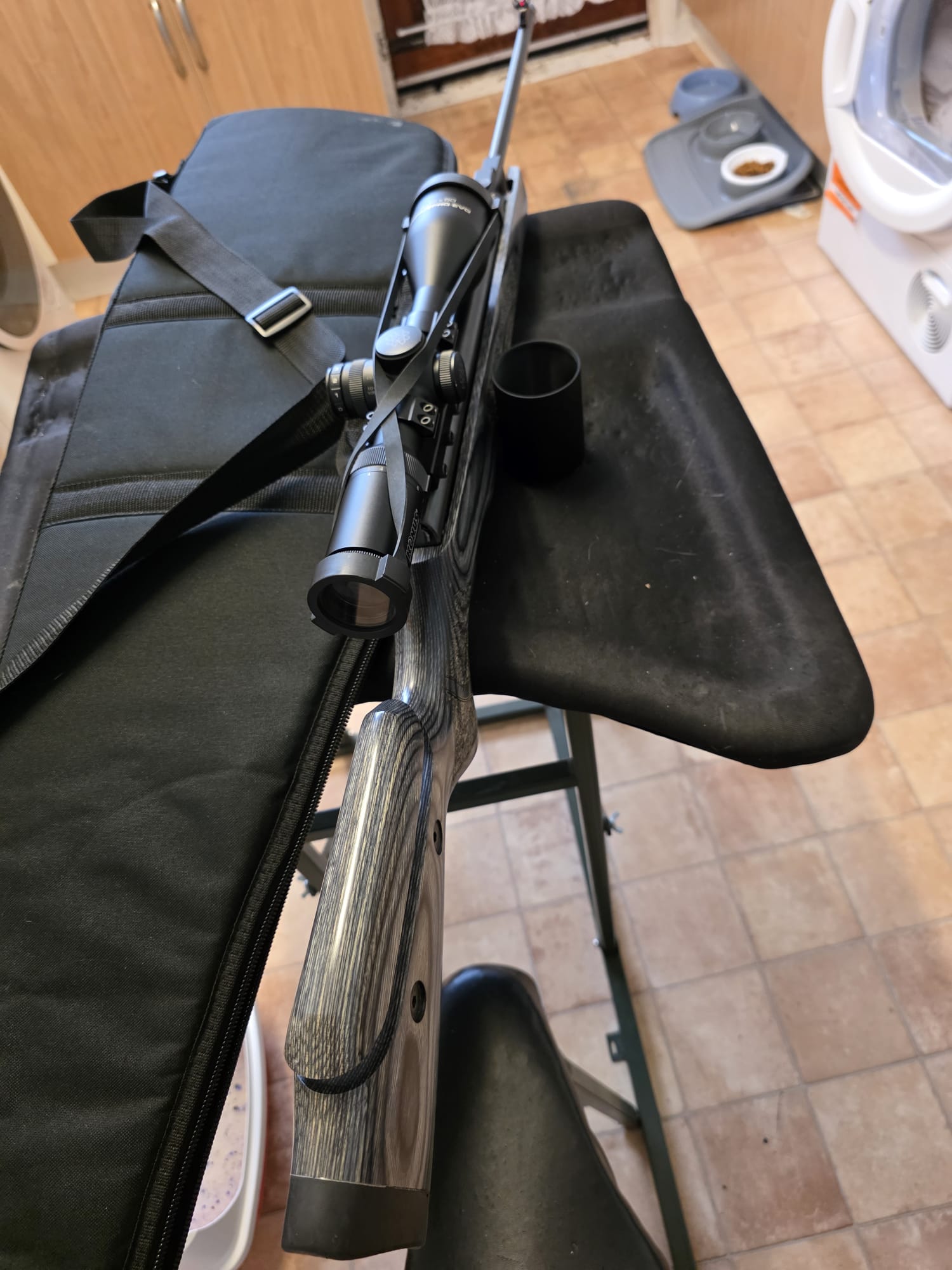 The rifle is in excellent condition with only a couple of very light marks to the seriously eye catching stock. The rifle has been tuned and features an incredibly fast lock time with minimal twang and recoil. The hideous plastic moderator has also been removed and instead features a metal 1/2UNF thread adaptor instead.
