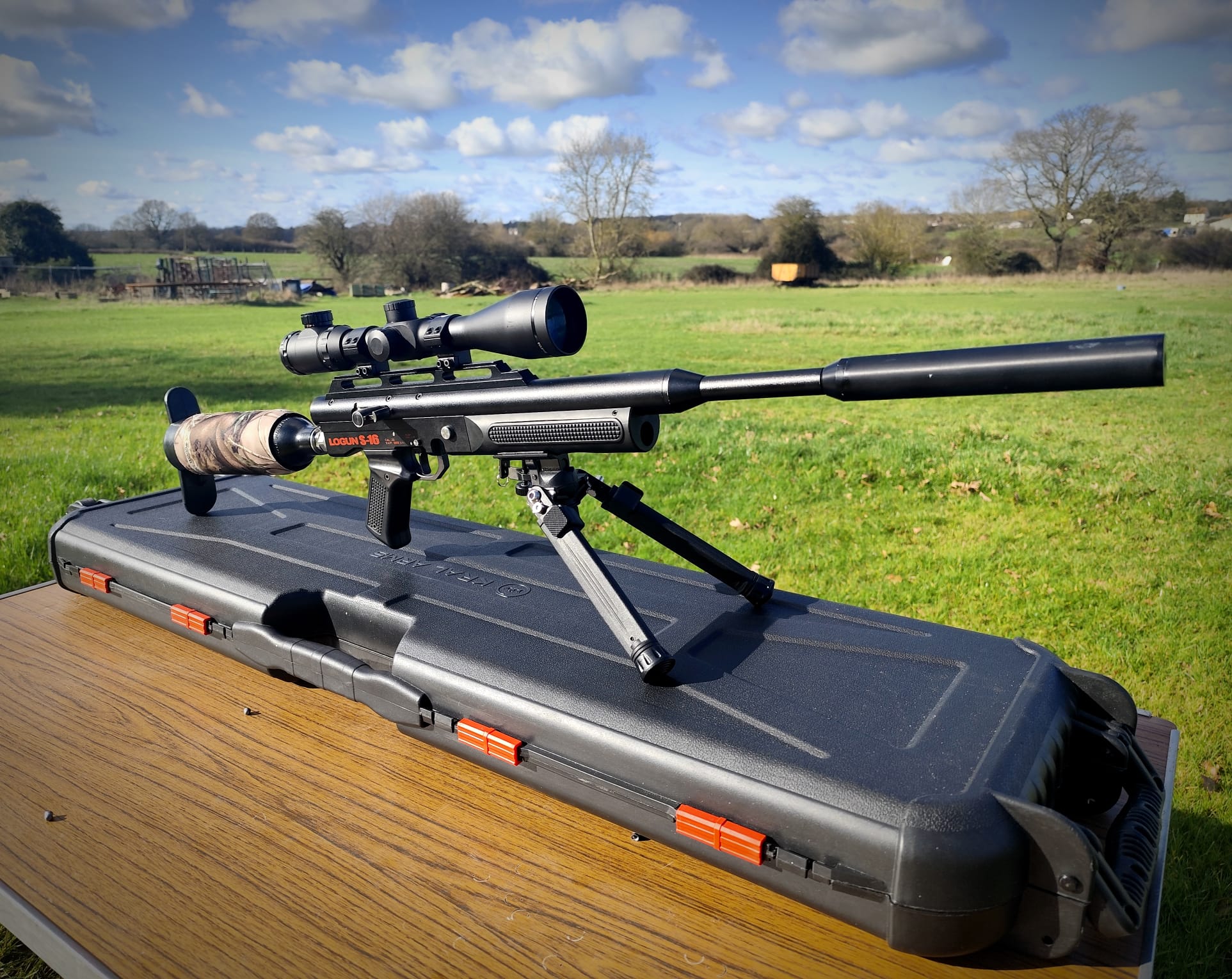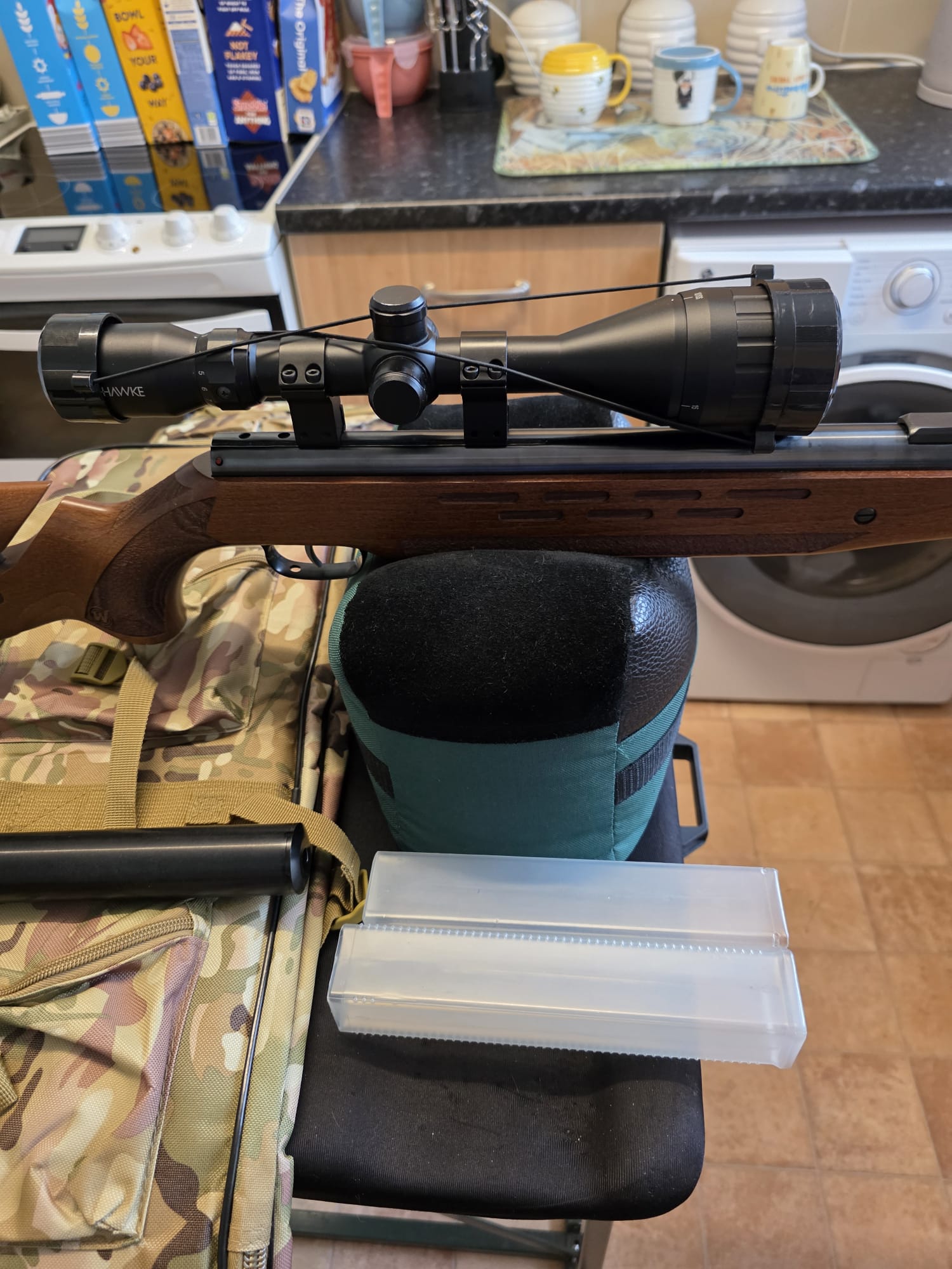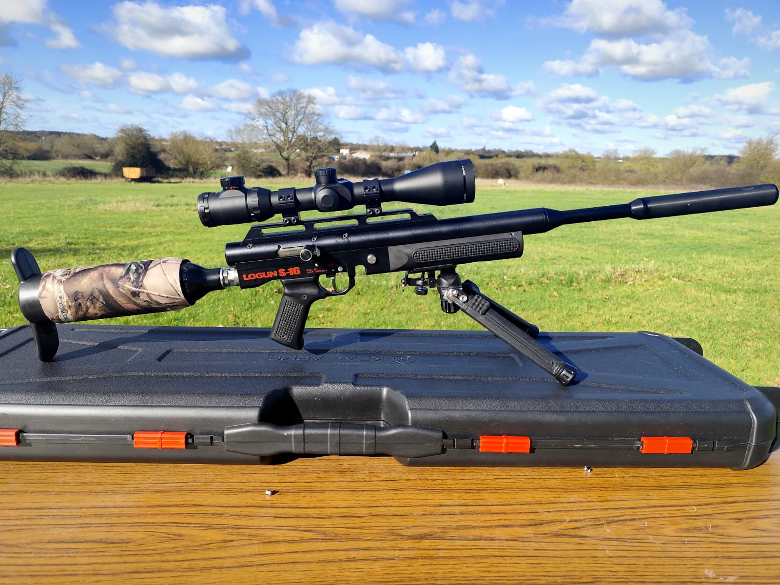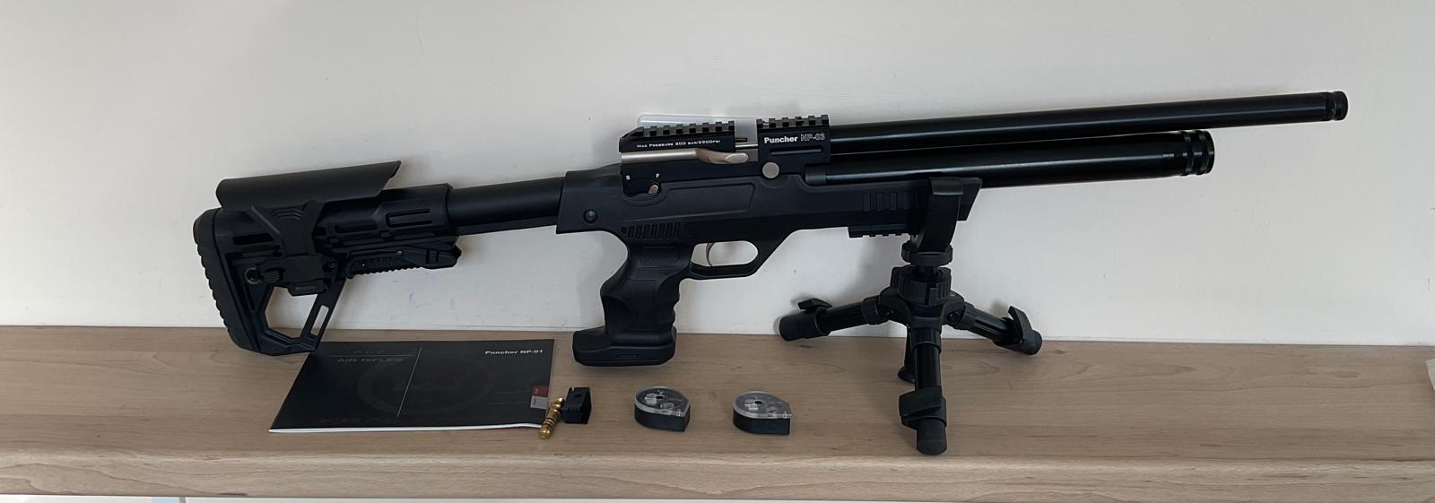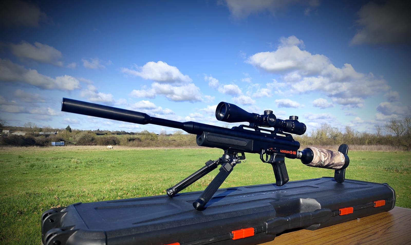 The rifle is in excellent condition although the moderator is a bit tatty (see picture gallery), that said it works perfectly and the rifle is whisper quiet. The rifle comes with its fill adaptor, 2x mags, bipod, hard case and a Hawke Eclipse 4-16x50SF scope.
