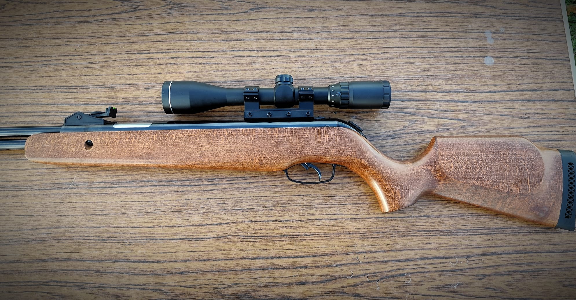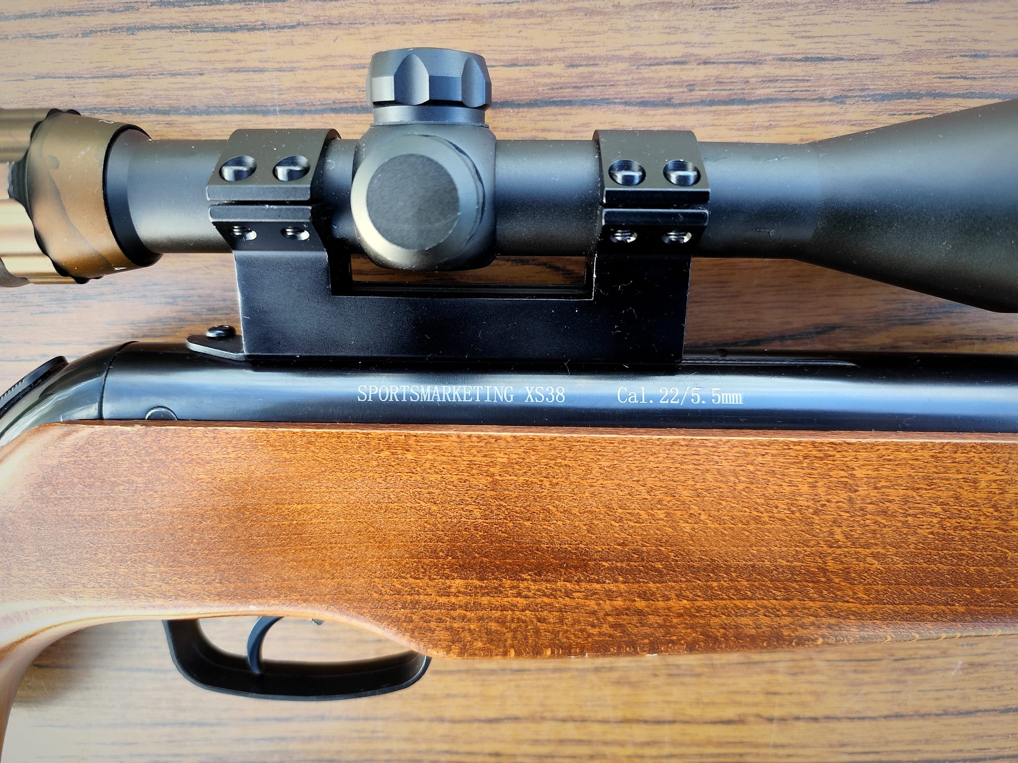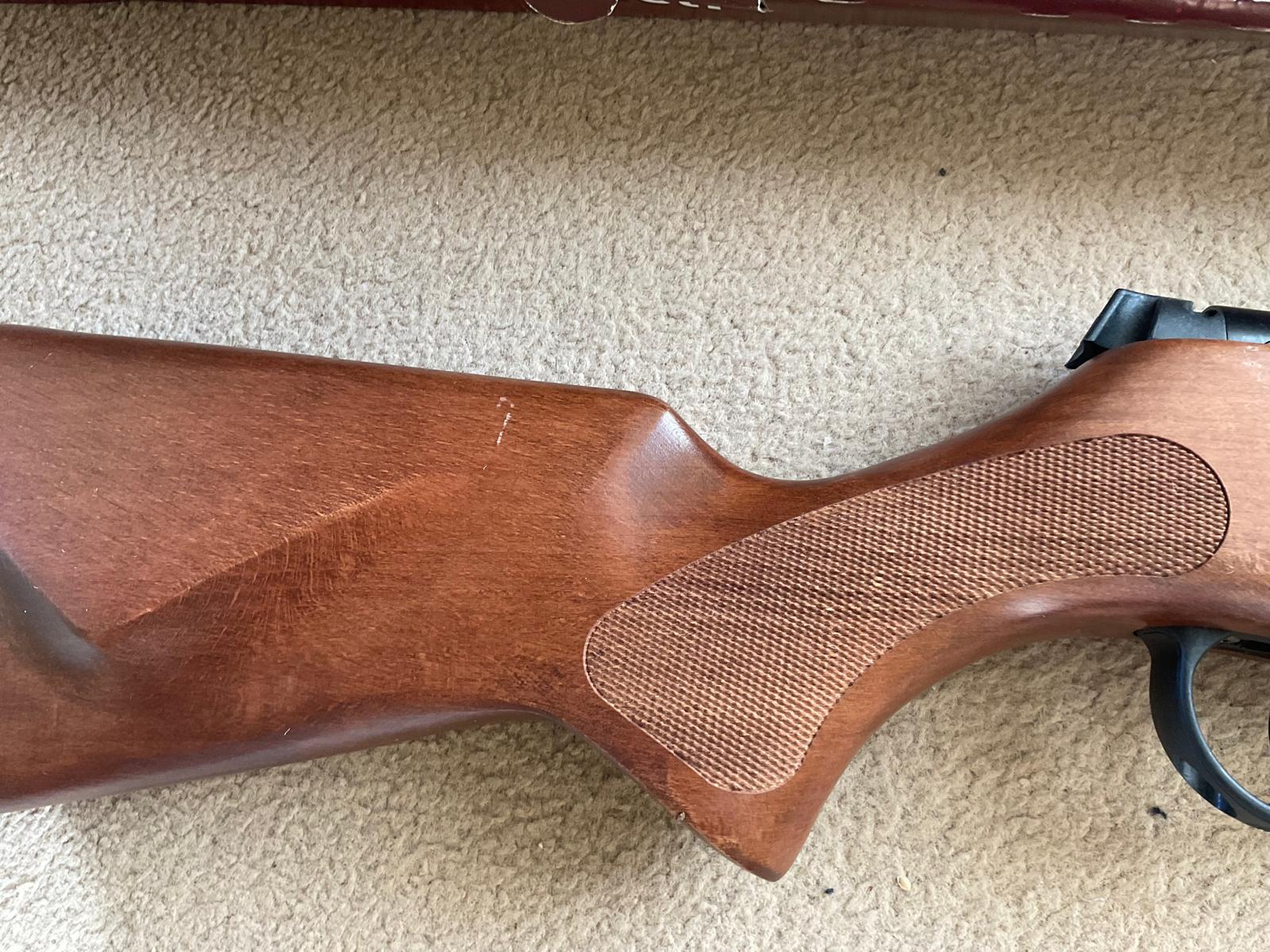 The rifle is in great condition with only a scratch near the forestock screw (see picture gallery) and one of the fibre optic filaments in the foresight is missing. This XS38 is incredibly smooth to shoot and has zero twang during the shot cycle. The trigger is also very light.