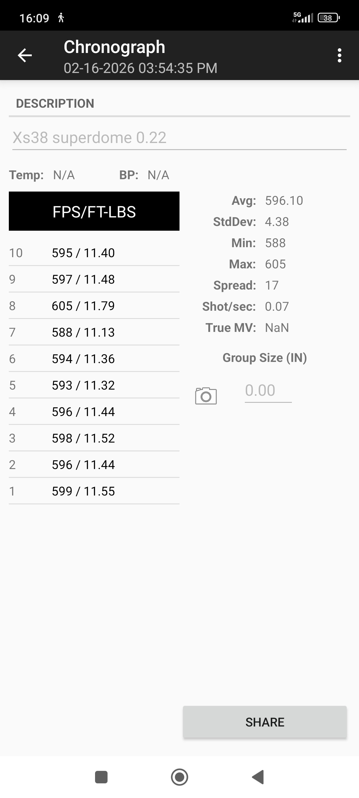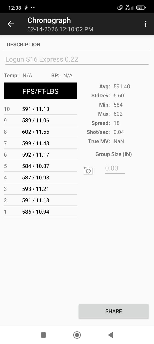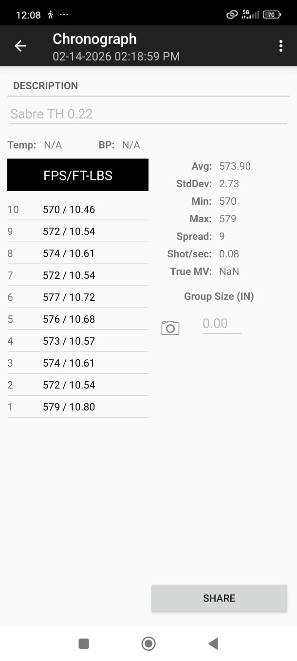 The rifle has been tested over the chronograph and is averaging 10.57ft-lbs with a spread of only 9fps!