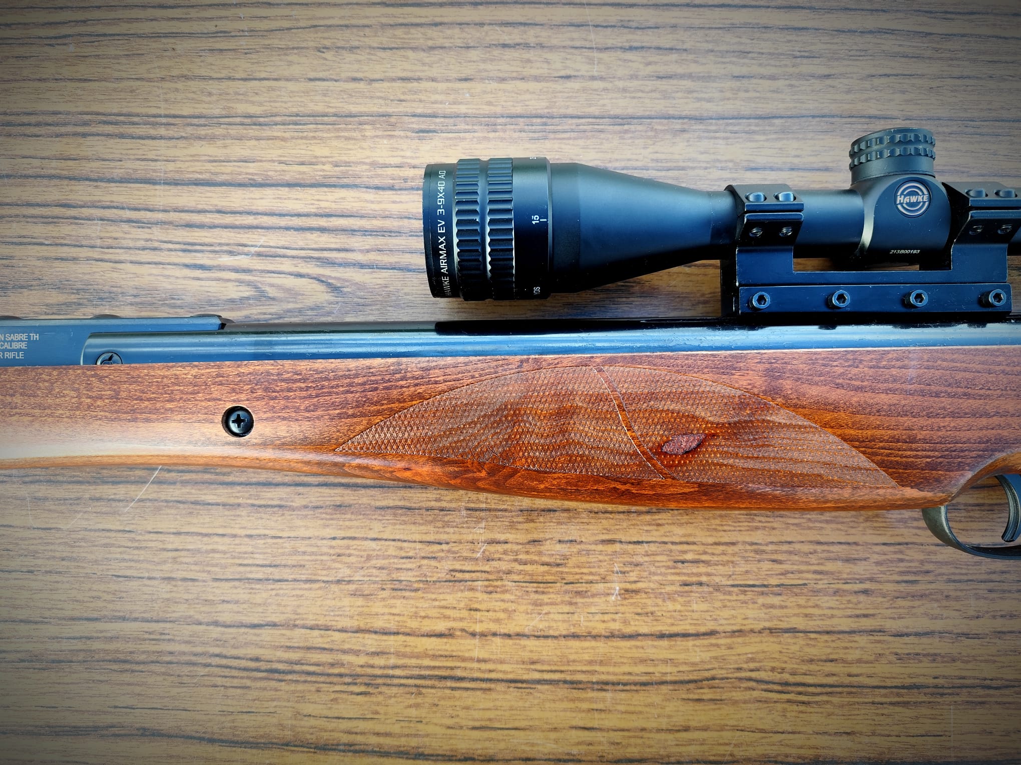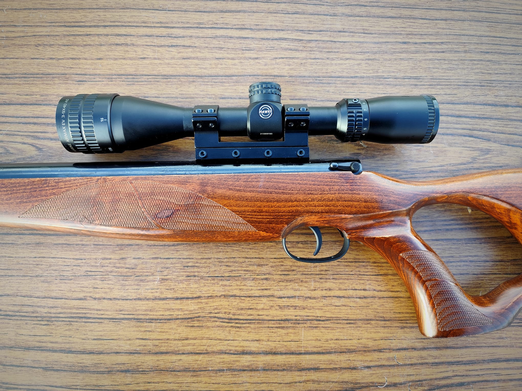 A Hawke Airmax EV 3-9X40AO has also been fitted and the rifle comes with a new slip.